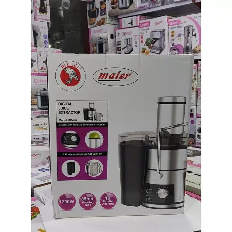 زندگی مدرن و پرشتاب امروزی ما را به سمت استفاده از وسایلی سوق داده که کارها را سریعتر و راحتتر انجام دهند. یکی از این وسایل کاربردی در آشپزخانه، آبمیوهگیری است. نوشیدن یک لیوان آبمیوه تازه نهتنها انرژیبخش است، بلکه سرشار از ویتامینها و مواد مغذی مورد نیاز بدن خواهد بود. اگر به دنبال یک آبمیوهگیری باکیفیت، قدرتمند و کارآمد هستید، آبمیوهگیری مایر مدل MR-267 یکی از بهترین گزینههای موجود در بازار است. در این مقاله به بررسی مشخصات، ویژگیها و مزایای این دستگاه پرداختهایم تا شما را در انتخابی آگاهانه یاری کنیم.برند مایر یکی از نامهای معتبر در تولید لوازم خانگی محسوب میشود که با ارائه محصولات باکیفیت، توانسته جایگاه ویژهای در بازار کسب کند. آبمیوهگیری مایر مدل MR-267 با قدرت 1200 وات و طراحی حرفهای، مناسب برای افرادی است که به دنبال دستگاهی قدرتمند و درعینحال ساده برای تهیه آبمیوههای طبیعی در منزل هستند. این مدل با داشتن ویژگیهایی مانند مخزن تفاله، ورودی بزرگ برای سیب کامل و قابلیت شستوشوی قطعات در ماشین ظرفشویی، تجربهای بینظیر از تهیه آبمیوههای سالم را برای شما رقم خواهد زد.