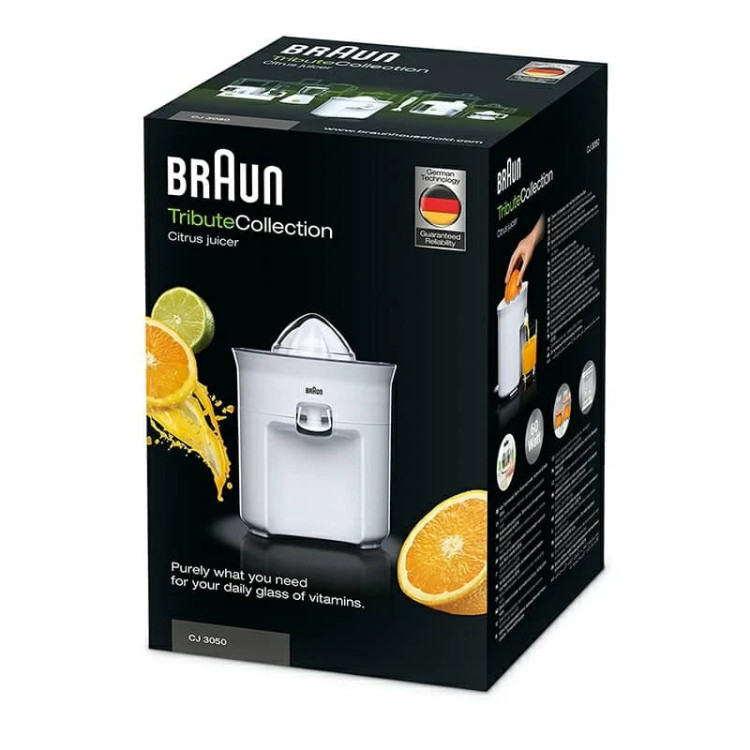 دوز روزانه ویتامین C خود را با آبمیوه گیری مرکبات Braun CJ3050 Tribute Collection به سرعت دریافت کنید. استفاده از این آب مرکبات گیر مشکی بسیار ساده است. به جای مبارزه با مجموعه ای از دکمه ها، تنها کاری که باید انجام دهید این است که میوه را فشار دهید تا آبمیوه گیری روشن شود و آن را بلند کنید تا متوقف شود.