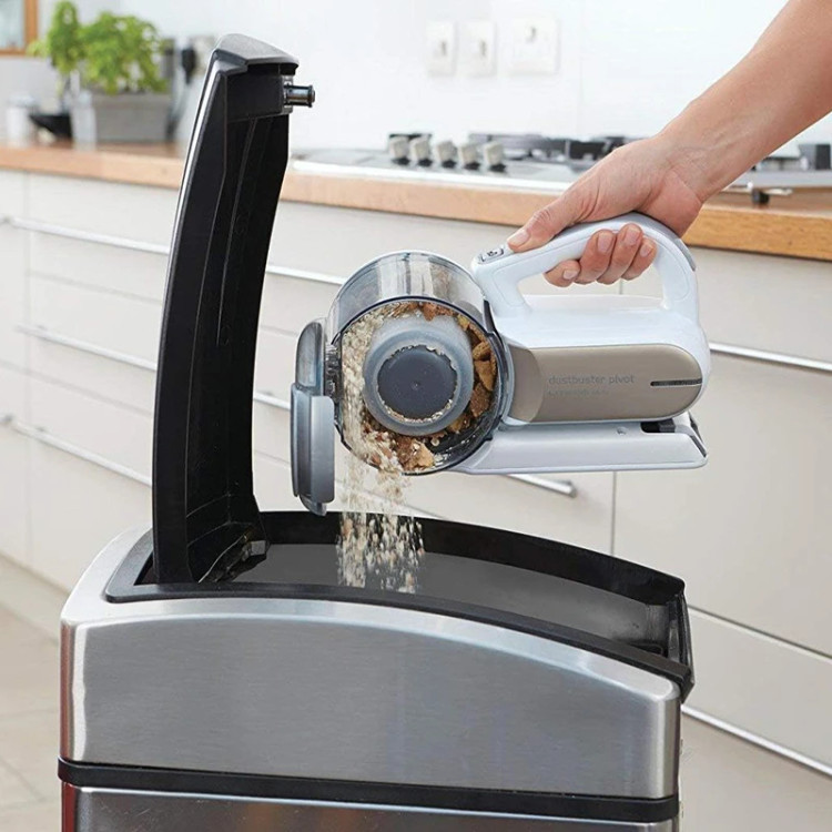 - چرخش بسیار زیاد نازل جارو به اندازه 200 درجه است. یعنی می توانید آن را در مکان هایی که دسترسی به آن قسمت دشوار است استفاده کنید. مثلا برای تمیز کردن راهروهای بین کمد و دیوار، بالای قفسه های کتابخانه، زیر میز و … استفاده کرد. همچنین وجود چرخش مناسب نازل حتی ما را قادر می سازد زیر کف مبل را هم به خوبی تمیز کنیم. از دیگر مزیت این جارو شارژی بلک اند دکر مدل PV1420 استفاده از آن در مسافرت ها برای تمیز کردن داخل اتومبیل و چادرهای مسافرتی می باشد.