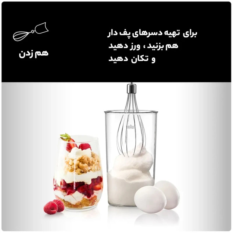 پیمانه شفاف درجه بندی شده برای مخلوط کردن به همراه درپوش خردکن بزرگ با قابلیت خردکردن یخ و دیگر مواد غذایی خردکن کوچک مناسب سبزیجات، آجیل، پیاز، گوشت، پنیر و … همزن بالونی از جنس استیل ضد زنگ برای هم زدن سفیده تخم مرغ، خامه یا مخلوط کردن خمیر پن کیک