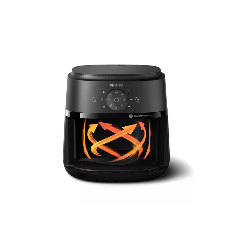 - فناوری Rapid Air: یکی از نقاط قوت این مدل استفاده از فناوریRapid Air است. این فناوری به گردش هوای داغ درون دستگاه کمک میکند و باعث میشود مواد غذایی به صورت یکنواخت و بدون نیاز به روغن فراوان سرخ شوند. نتیجهی این فرآیند، غذاهایی با بافت ترد در بیرون و نرم در داخل است.